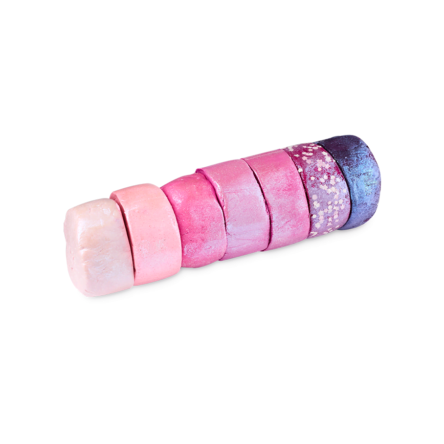 – While you can mold and play with every pink color, some of them are a little special. The palest pink has extra carrageenan, ideal for smoothing across wet hair for a perfectly sweet hair wash.